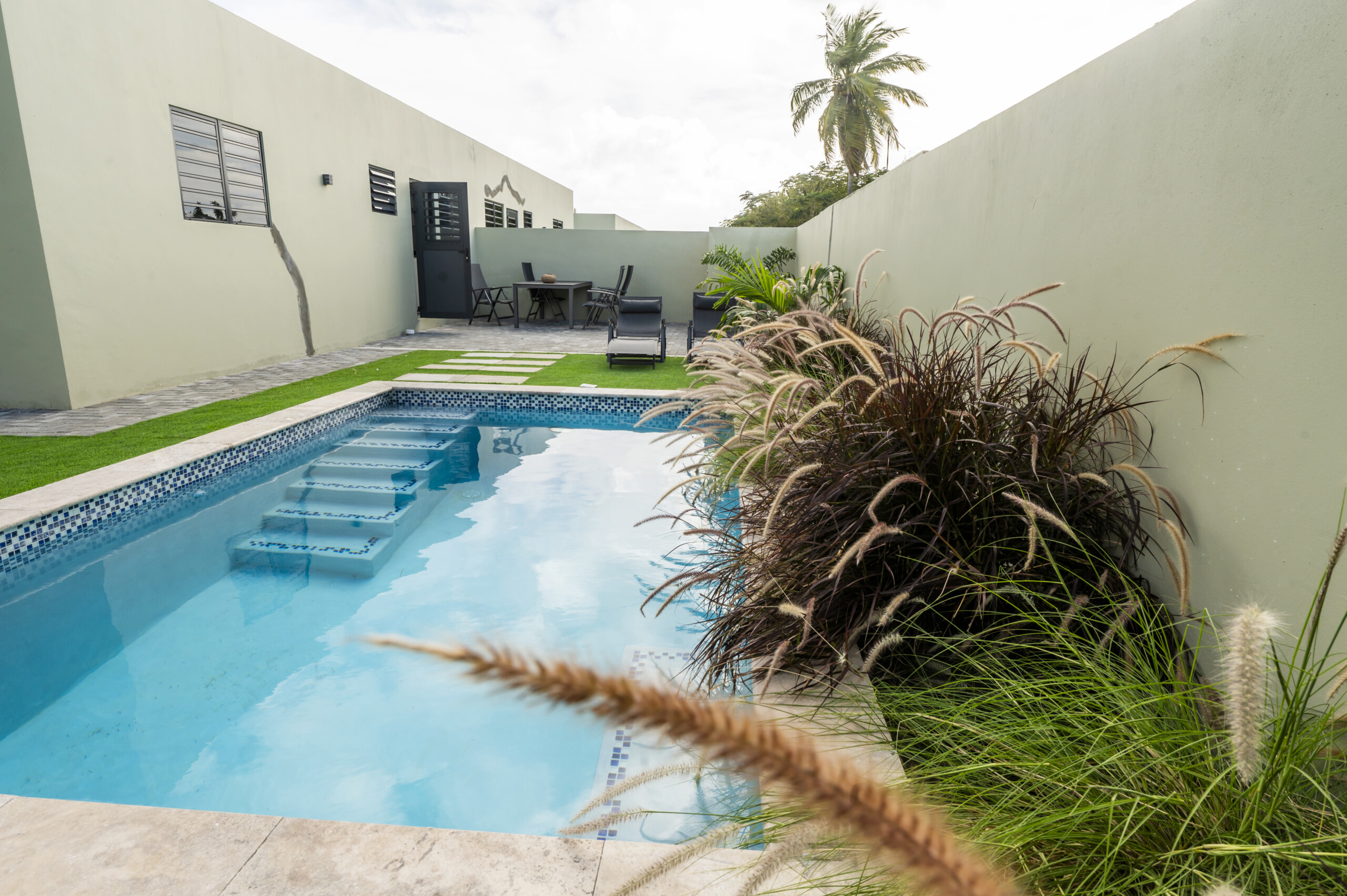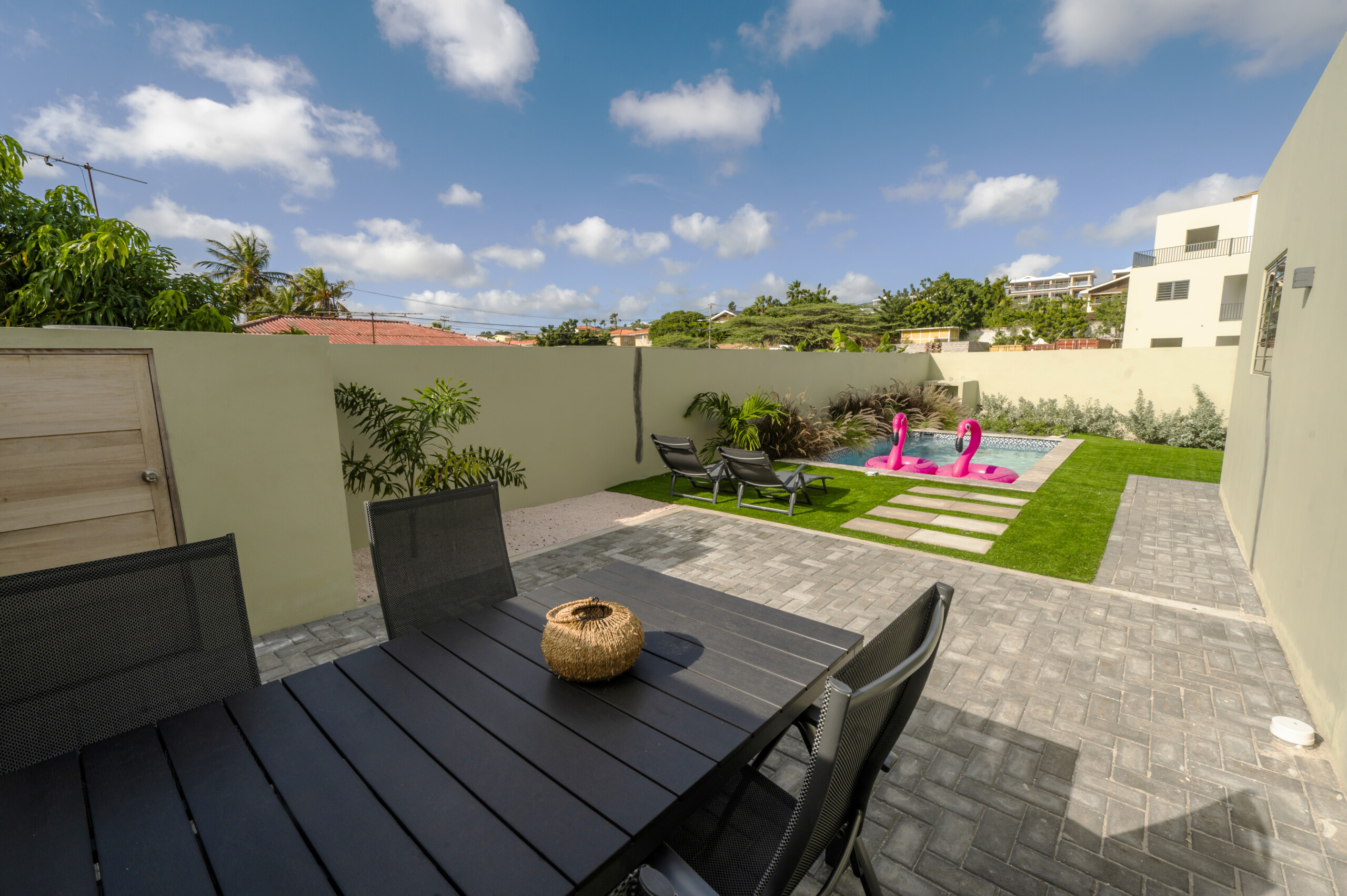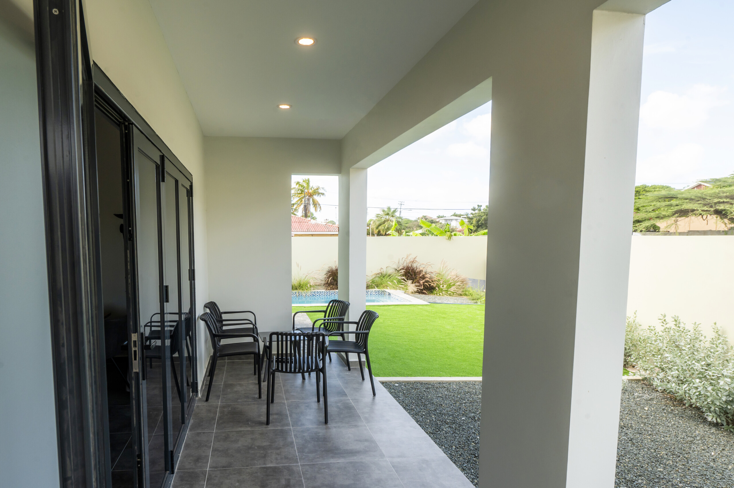 ✔️ Private outdoor terrace with tropical lounge space