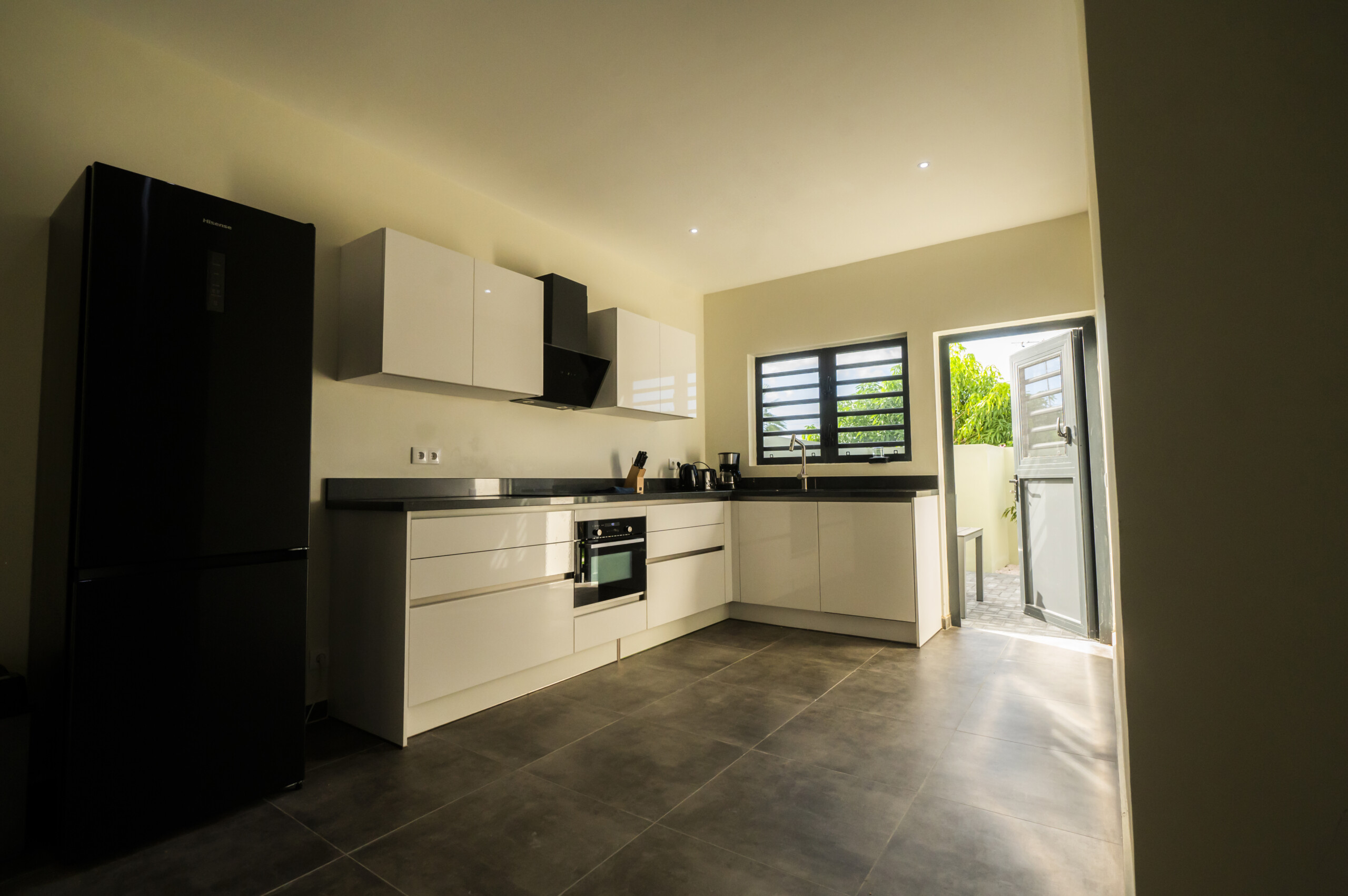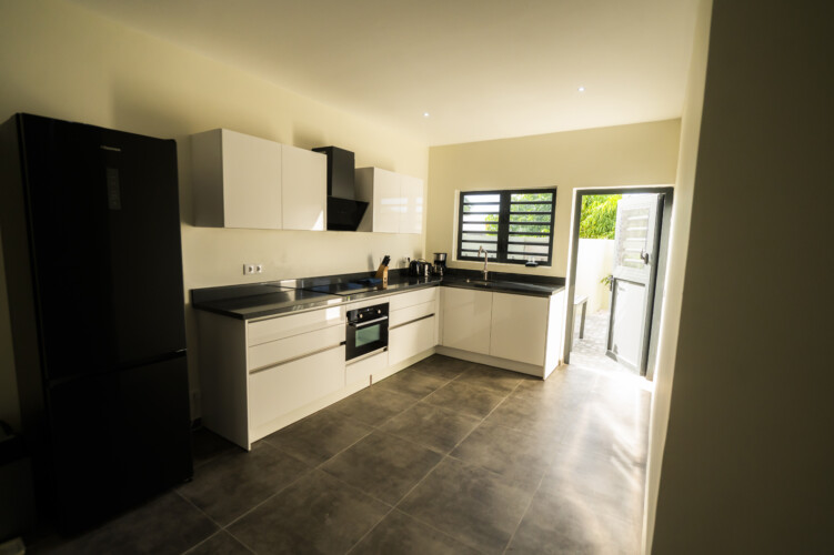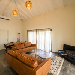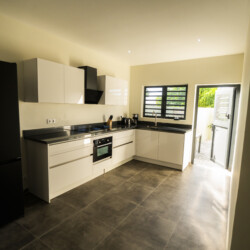 Step inside and be welcomed by a serene, tastefully decorated living area with fast Wi-Fi, smart TV, and full air conditioning. The fully equipped kitchen invites you to start your mornings with fresh island fruits or unwind in the evening with a glass of wine and a home-cooked meal.