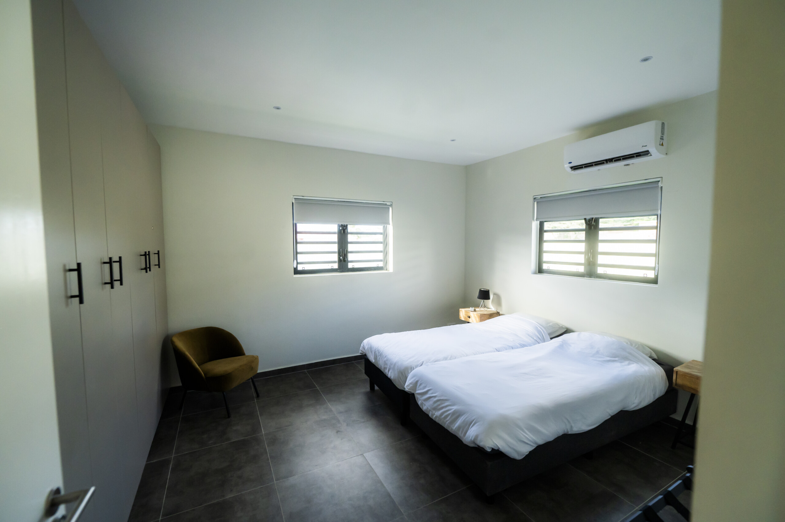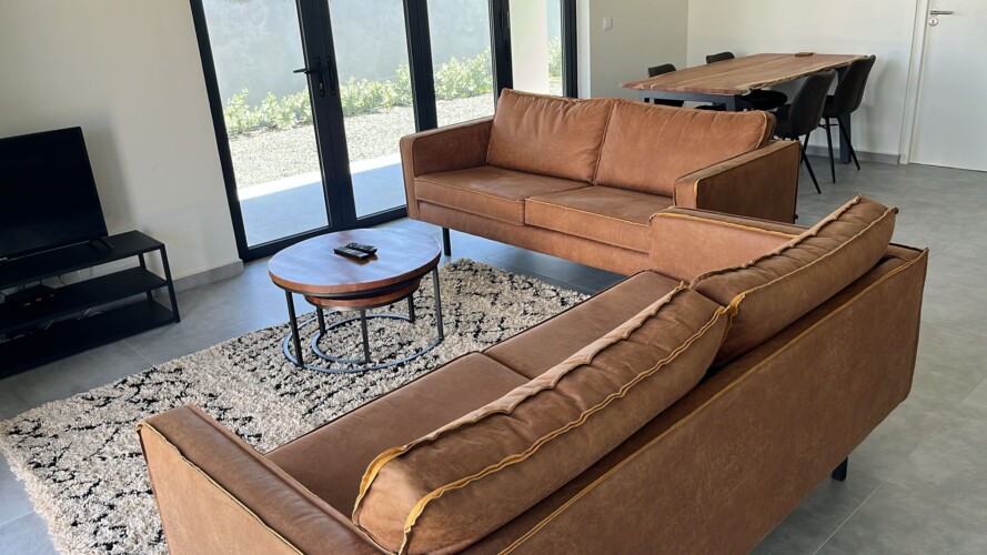 The master bedroom features an elegant ensuite bathroom for added privacy, while both bedrooms ensure a cool, restful sleep after sun-soaked days. Outside, your private terrace and lounge area set the scene for lazy afternoons, sunset cocktails, or quiet evenings under the stars.